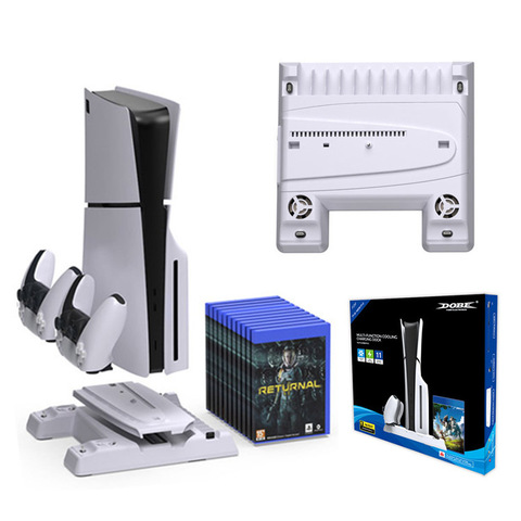 PS5 슬림 콘솔용 디스크 스토리지 랙이 있는 다기능 범용 냉각 충전 베이스